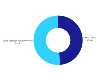 V tomto konkrétním případě jsme počítali s vyšším výnosem ze zhodnocení než z pronájmu. V dalším grafu vidíte rozložení mezi obě složky výnosů.