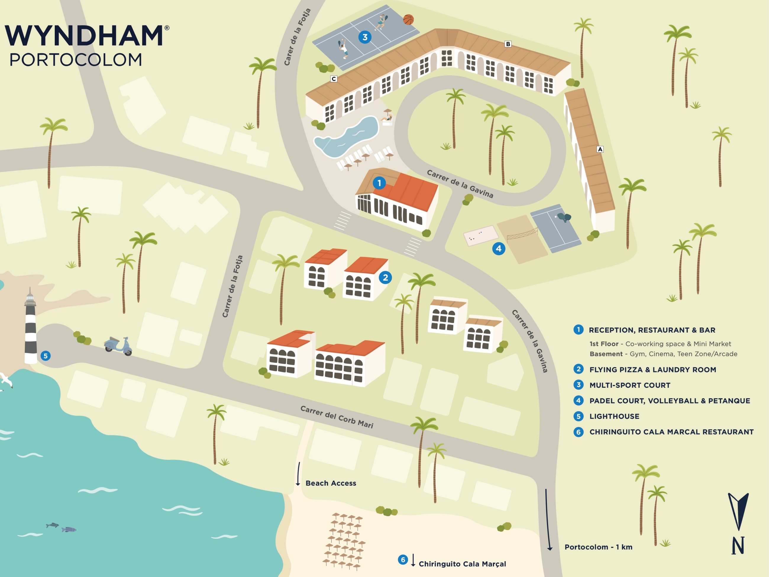 The Wyndham Portocolom project is designed as a modern resort located just steps from Cala Marçal beach, blending leisure, sports, and a family-friendly lifestyle. The complex includes swimming pools, fitness and wellness facilities, restaurants and bars, sports areas, coworking spaces, and a kids’ club. The resort is operated by the international brand Wyndham in cooperation with IDILIQ, allowing investors to hold individual units completely passively with a guaranteed return throughout the project’s duration.
