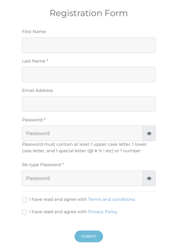 The second half of the registration is important mainly in terms of confirming the Terms and Conditions and the Privacy Policy. If you have filled out everything and checked and confirmed that the documents are acceptable, you can then click on "Submit".